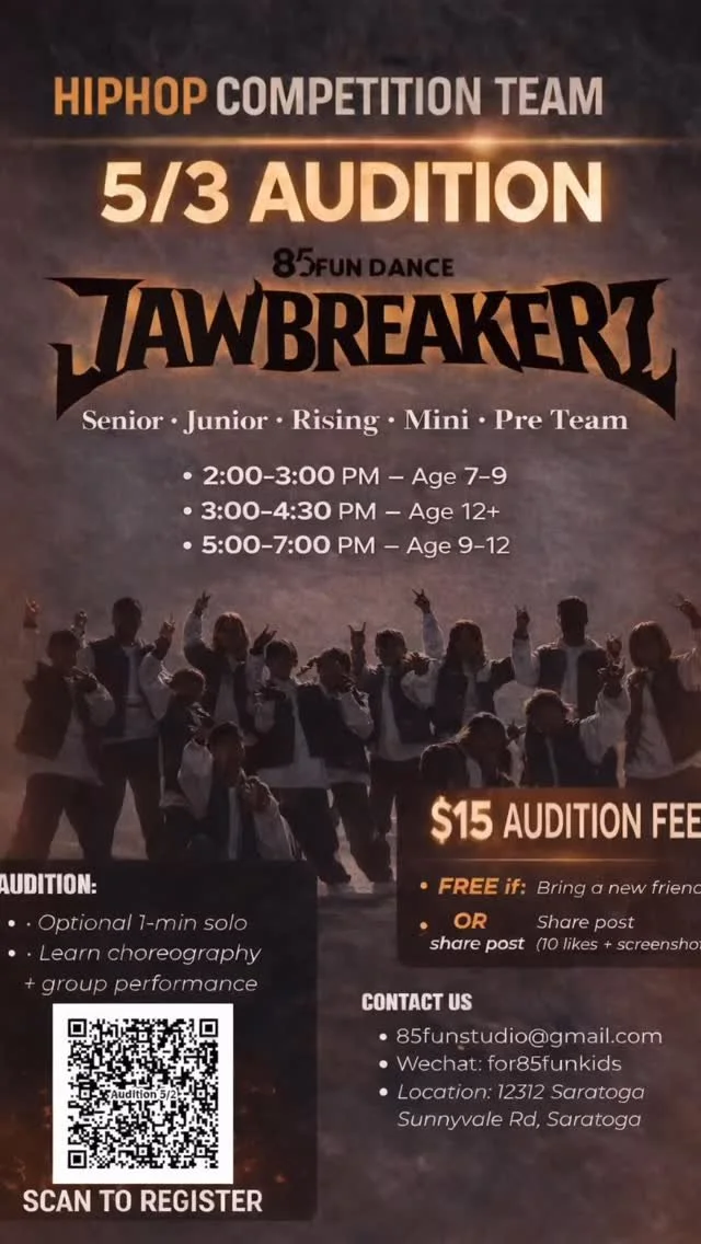 Based in Saratoga, JawbreakerZ is built on the principles of hard work and integrity. It was formed as an experimental junior team under main Director Vincent from 85Fun Dance, now it starts making significant progress in establishing their own identity within the dance community. Train in fundamental styles including waacking, locking, breaking, popping, and housing. Senior team also hosts freestyle and battles. Team members also gain access to master workshps.